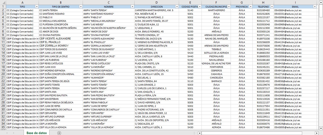 | AMPA "SANTA ANA" | CEIP SANTA ANA | 5001 | ÁVILA | ÁVILA |
