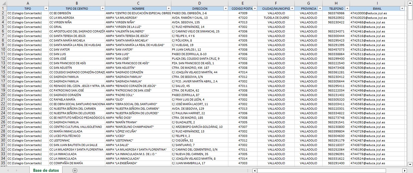 | AMPA "CRISTÓBAL COLÓN" | CC CRISTÓBAL COLÓN | 47012 | VALLADOLID | VALLADOLID |