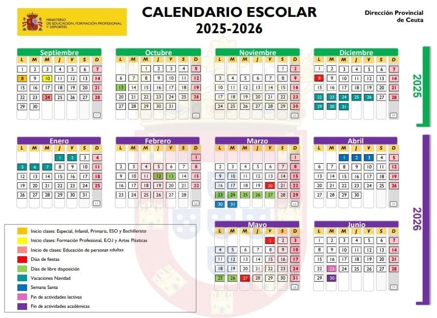 Bases de datos de ColegiosCalendario Escolar España 2025-2026Calendario escolar Ceuta 2025/2026 Calendario escolar Ceuta 2025/2026